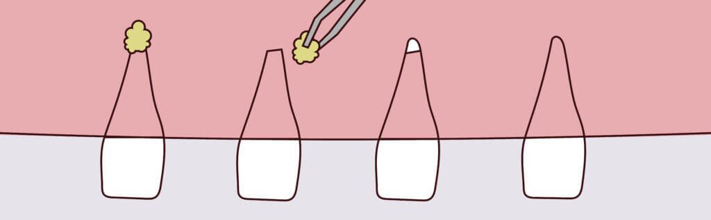 During apical surgery, the endodontist accesses the infection through an incision in the gums. The infected tissue is removed and sent to a pathology lab to be evaluated. The root’s tip, which usually contains the source of the problem, is also removed. The endodontist then carefully prepares a small tunnel in the root canal and places a root-end filling. The gum tissue is closed with sutures that are removed after several days. Once the infection is removed, the bone can heal.